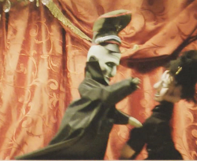 ![]() | “uno spettacolo con burattini che oggi racconta una storia di ieri, mai conclusa, anzi una storia presente" Lo spettacolo, che parla a grandi e piccini, propone alcune questioni legate al fascismo in Italia, alla lotta di Resistenza, alla Liberazione considerando quei tempi e quelle questioni mai passati né risolti, spostando quegli eventi dalla sfera di un mito che può apparire lontano ed intangibile alla concretezza del linguaggio popolare e divertente dei burattini...l'idea e il testo hanno avuto riconoscimenti informali importanti da parte di personalità della cultura nazionale. Elis e Maurizio scoprono di avere una zia in comune, Imelda, nota affabulatrice di famiglia. |